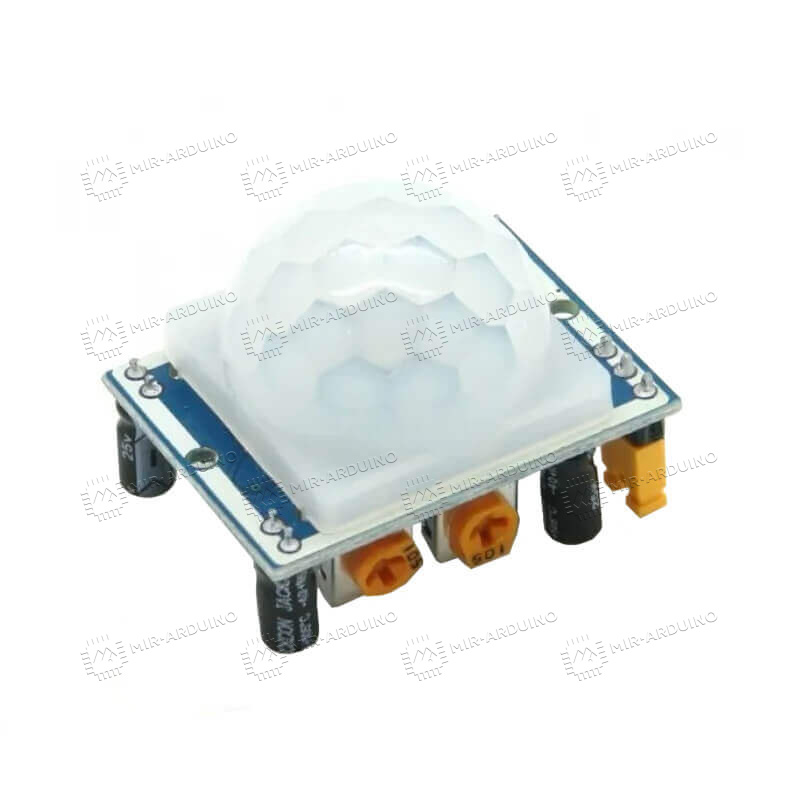 Инфракрасный датчик движения HC-SR501 – автономный PIR прибор, реагирующий на движение человека. С помощью датчика можно регулировать освещение в доме или на улице, его также можно использовать в охранных системах и другой автоматике, собранной на базе Ардуино. Регулировка чувствительности позволяет свести к нулю риск ложных срабатываний. Можно настроить датчик на движение на расстоянии 3-7 метра с длительностью сигнала от 3 секунд до 5 минут. Предусмотрен встроенный стабилизатор напряжения. Имеется три выходных контакта: на землю, питание и на микроконтроллер.