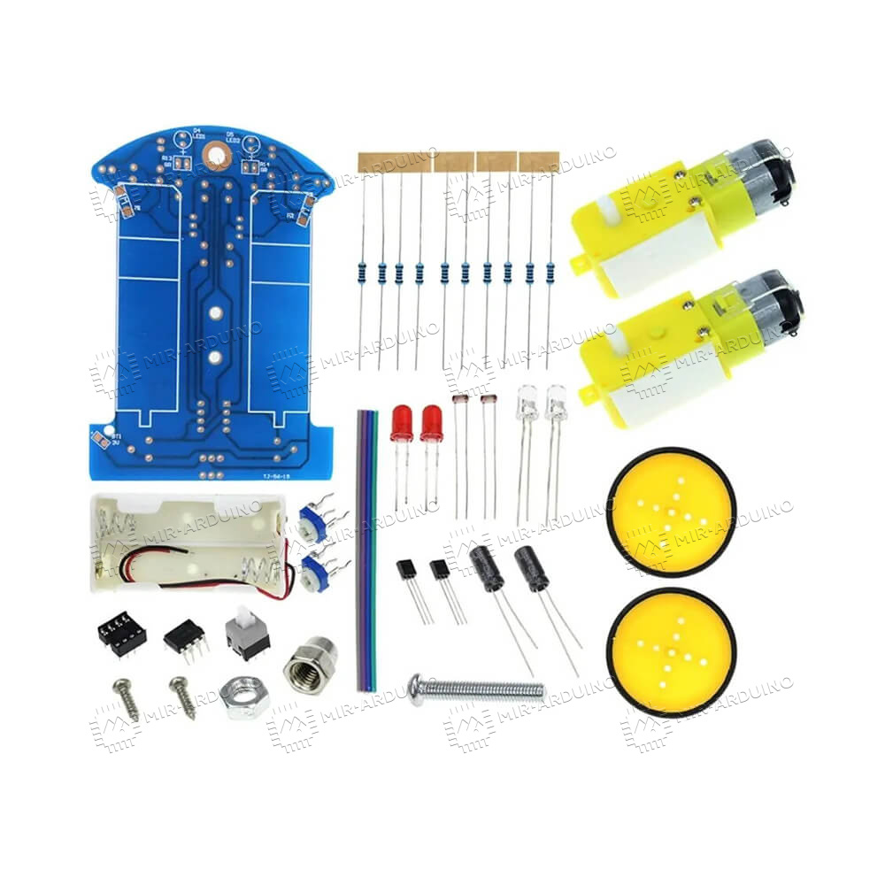 Набор для моделирования Ардуино (Arduino) 2WD Robot D2-5 поможет создать простейший механизм с автоматическим управлением. В набор входят все необходимые элементы для проектирования машины-робота – плата, колеса, шины, двигатель и радиодетали. Работает собранное устройство от двух батареек типа АА, их нужно покупать отдельно. В комплекте есть подробная инструкция по сборке. Умный конструктор используется для обучения основам автоматического управления. Подойдет для детей от 7 лет, будет полезен для начинающих программистов и робототехников.